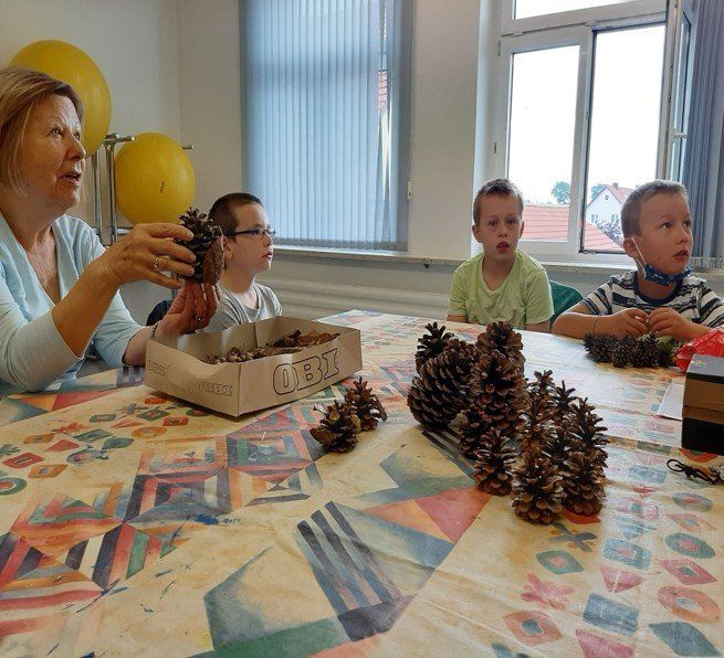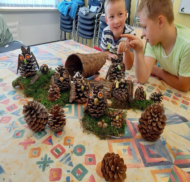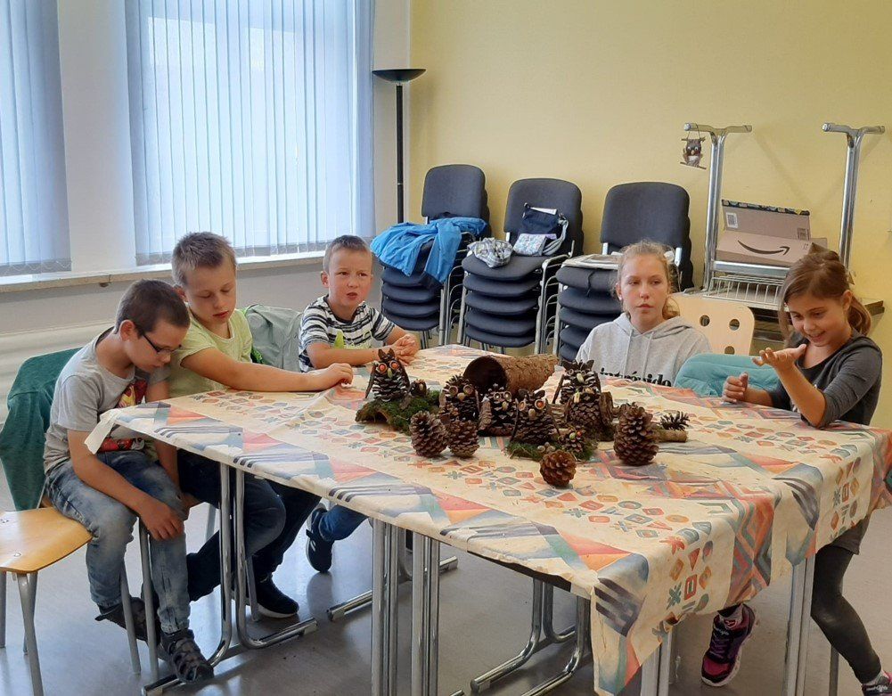 Am 11. September trafen wir uns zum Basteln mit Naturmaterialien in einem Raum der VHS wieder. Es entstanden kleine Kunstwerke in unterschiedlichen Größen und Formen. Klara hat die Kinder angeleitet, wir haben sie dabei tatkräftig unterstützt.