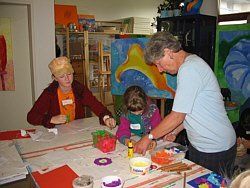 Leider konnten wir unsere ursprünglichen Pläne wegen des schlechten Wetters nicht ausführen und so trafen wir uns wieder im Atelier von Frau Blaas zum Basteln. Mit kleinen Seidenpapier Kügelchen gestalteten die Kinder verschiedene Frühlingsmotive und klebten sie zum Schluss auf farbigen Fotokarton. Am nächsten Tag war ja Muttertag, da konnten die hübschen bunten Bilder gleich verschenkt werden. Wie immer waren die Kinder begeistert bei der Arbeit. Eine Vorlesegeschichte rundete den Bastelvormittag ab.