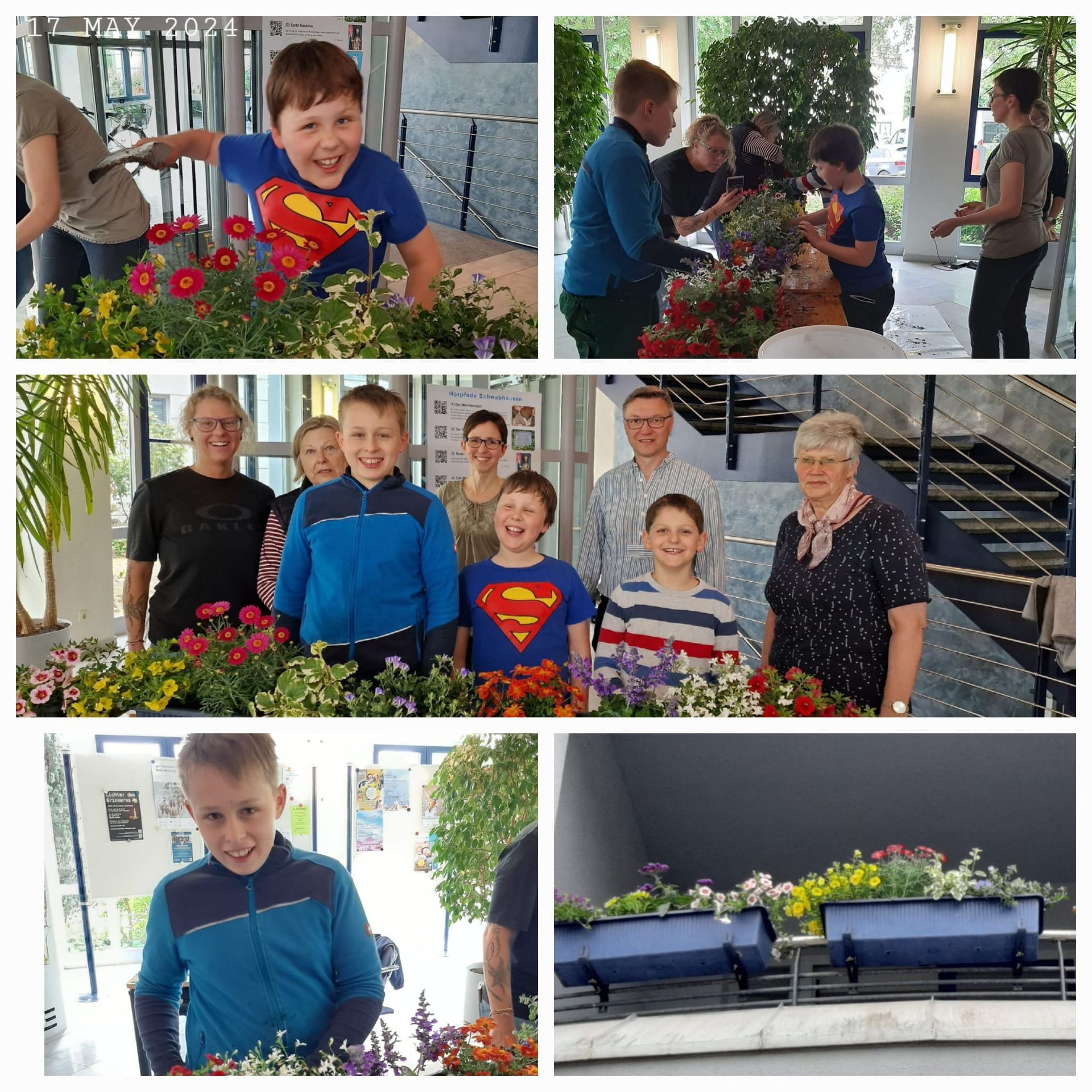 - Unser Bürgermeister bat uns auch dieses Jahr im Mai wieder, die Balkonkästen des Rathauses zu bepflanzen - das machen unsere großen und kleinen Waldgeister mit Begeisterung.
