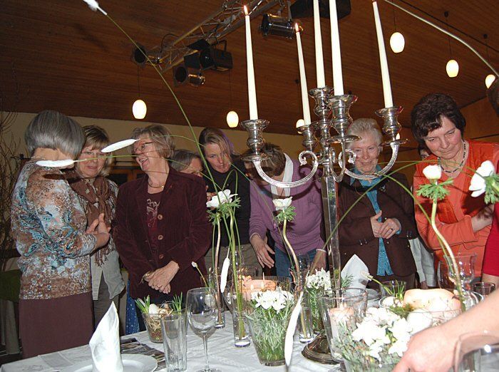 Ein besonderer Augenschmaus war der Vortrag von Sabine Rubner. Unter dem Motto "Eingepflanzt und aufgetischt in den Frühling" zauberte die Floristin innerhalb kürzester Zeit eine mit Frühlingsblumen, Gräsern, Moos, Federn, Kerzen und ausgeblasenen Eiern bestückte Tafel in Grün und Weiß. Abgerundet wurde der Vortrag mit Bildern von Hochzeitstafeln und Firmenevents in und außerhalb Bayerns, bei denen Sabine Rubner ihre florale Kunstfertigkeit unter Beweis hatte stellen können. Der Applaus zeigte, dass man in Schwabhausen "den Prophet im eigenen Land" durchaus zu schätzen weiß.