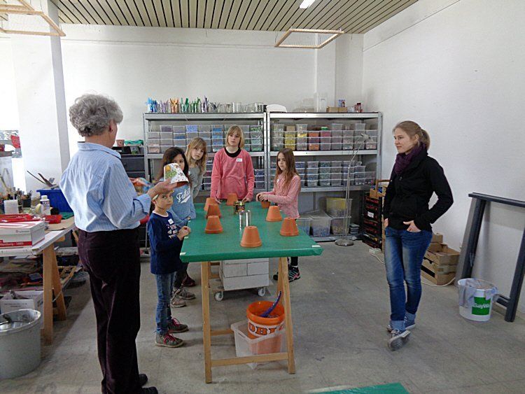 Dieses Waldgeistertreffen fand ausnahmsweise an einem Samstagnachmittag statt. Vierzehn Waldgeister hatten sich dazu angemeldet. Svenja Blaas, Tochter der Schwabhausener Künstlerin Frau Blaas, hatte sich bereiterklärt, die Kinder mit Rat und Tat bei der künstlerischen Gestaltung der Blumentöpfe zu begleiten.
