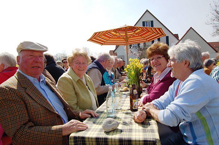 Bei herrlichem Wetter feierten an die 300 Gäste auf der Streuobstwiese das Narzissenblütenfest. Jung und Alt saßen zusammen bei Kaffee und Kuchen an mit dicken Narzissengebinden geschmückten Tischen. Auch die in den Vorjahren, zwischen den Obstbäumen, gepflanzten Narzissen standen in voller Blüte.