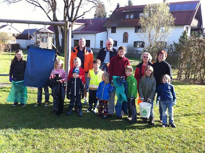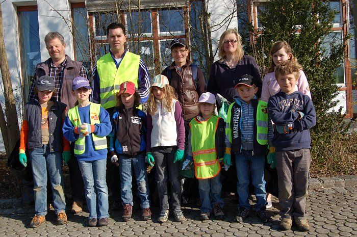 Eine Eltern-Kinder-Gruppe sammelte den Unrat in der Schul- und Turnhallengegend