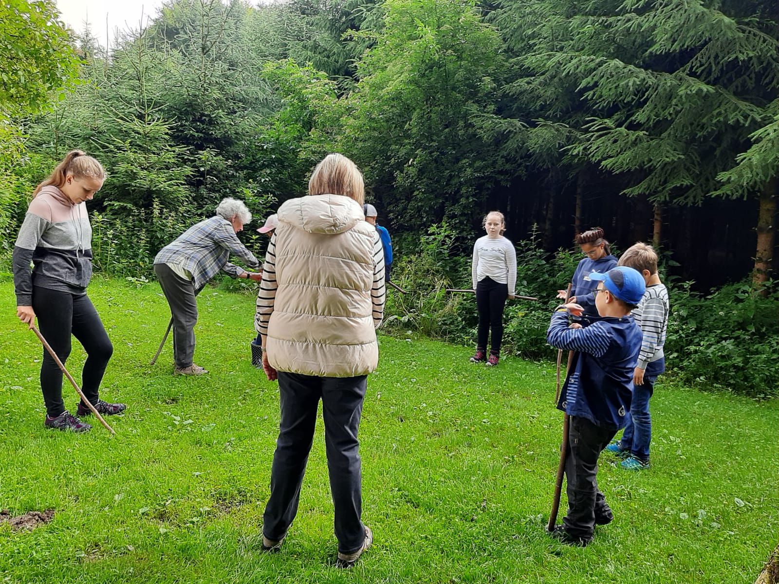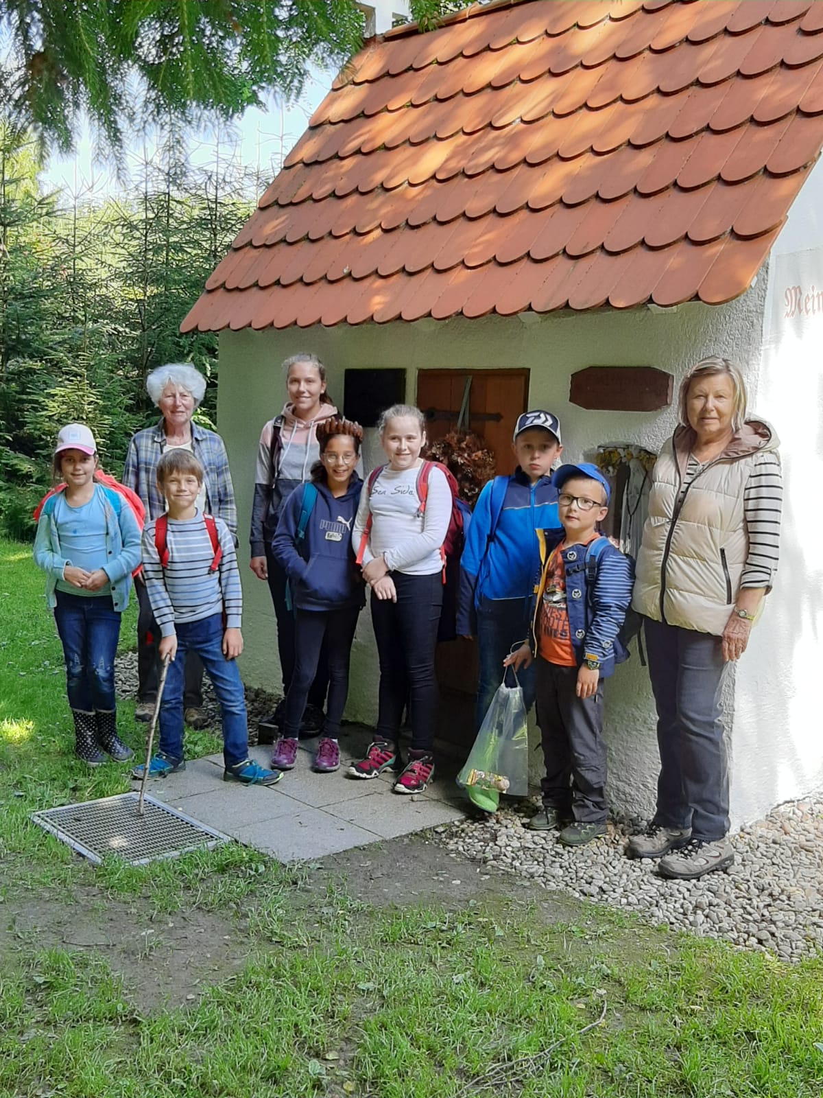 Nach fast 1 1/2 jähriger Coronapause fand am Samstag, 10. Juli, ein Ausflug der kleinen und großen Waldgeister ins Branntholz zur Stalingradkapelle statt. Dort und auf dem Weg dahin wurden aktions- und lehrreiche Spiele unternommen, bei denen auch der „Waldkönig“ oder die Waldkönigin“ ermittelt und mit einer Zapfenkrone gekrönt wurde.